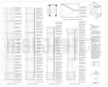 Maquila de planos de albañilería, modelando y documentando cada elemento situado en los planos estructurales. En la documentación se entrego la planta de albañilería y secciones por cada eje, resaltando tambien algunos detalles complejos.