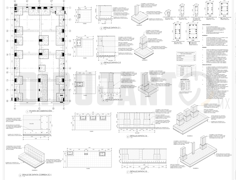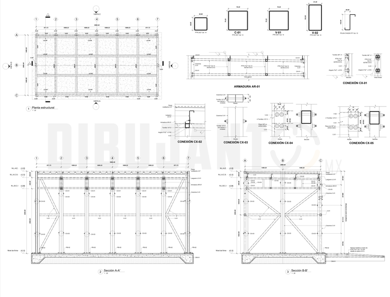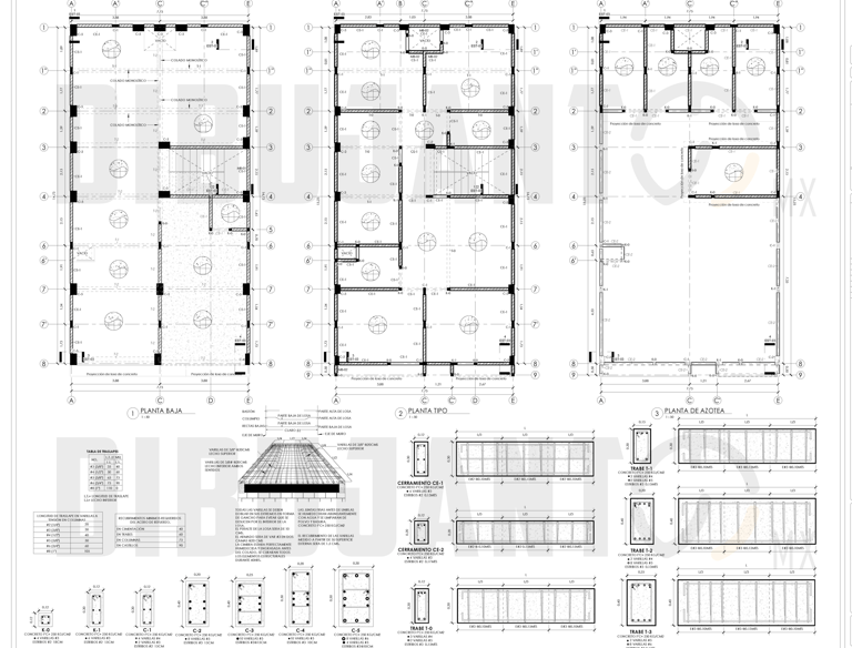 Planta estructural, secciones y detalles